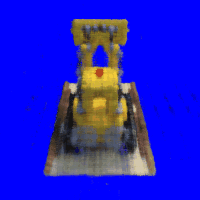 In order to change the background color of this rendering, we can inject color into the volume rendering. We did this by creating a new volume rendering function that includes background color as a parameter. The function modifies the normal volume rendering process to account for a background color by adding an additional step at the end. In standard volume rendering, the final color is calculated by summing the contributions of each sampled point along the ray. To include the background color, the function computes the remaining transparency of the ray (i.e., 1−sum of contributions from the scene) after accounting for all sampled points. This remaining transparency is then multiplied by the background color and added to the rendered scene colors.